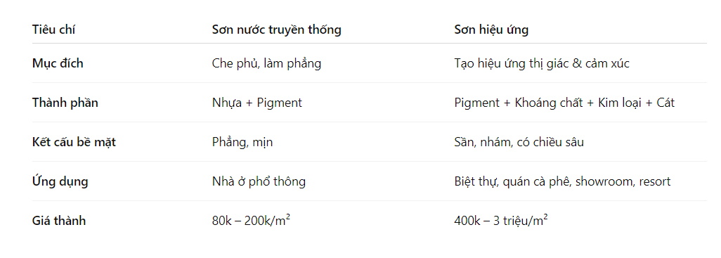 2. Phân biệt sơn hiệu ứng và sơn nước truyền thống