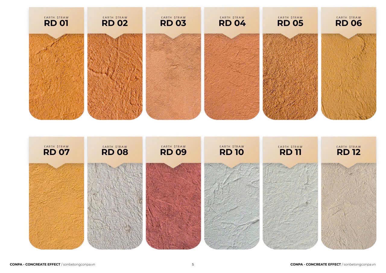 Thương hiệu Conpa đã nghiên cứu và phát triển dòng Sơn hiệu ứng Rơm Đất từ tinh thần thủ công, khai thác vẻ đẹp của đất, rơm, sợi tự nhiên và kỹ thuật màu cổ điển. Các mẫu màu Rơm Đất tại Conpa mang tính ứng dụng cao, đa dạng từ: